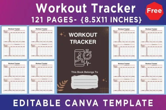 Workout Tracker Canva Template Ultra-compact set: a Β«This Book Belongs ToΒ» page and a Workout Tracker β enough to kick things off. 121 Canva templates for full customisation, US Letter 8.5 Γ 11, 300 DPI, CMYK, no bleed. Editable with a free Canva account. PDF, JPEG, and PNG files included β download and print instantly.