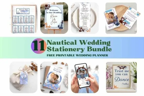 Want your wedding venue to look absolutely stunning from every angle? This nautical beach-themed wedding bundle has you covered with a complete set of wedding stationery plus 37 creative wedding signages — everything from “Choose a Seat Not a Side” to “Eat. Drink. And Be Married.” On top of the gorgeous signs, you’ll receive the full 270-page wedding planner as a FREE bonus, covering everything from pre-wedding checklists to on-the-day emergency kits. Fully editable in Canva with an included e-book for beginners, this is the ultimate all-in-one bundle for brides who want cohesive, beautiful wedding visuals.