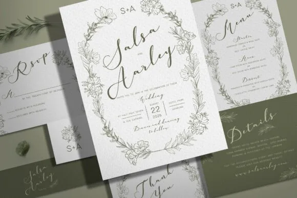 Succulents have become one of the most beloved symbols of modern weddings — resilient, beautiful, and wonderfully unique, just like your love story. This Succulent Wedding Invitation Template captures that spirit perfectly with a lush greenery design that feels both fresh and timeless. The complete suite gives you an Invitation (5″×7″), Details Card, RSVP Card, and Thank You Card — all as fully editable, high-resolution PSD files. The font combination of White Garden, Abhaya Libre, and Montserrat Medium strikes a lovely balance between natural softness and clean readability. With unlimited edits and downloads included, you can fine-tune every word and detail until it’s exactly right.