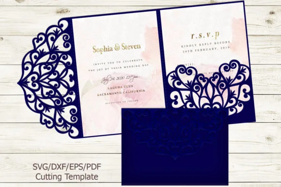 If you love the idea of a handcrafted, one-of-a-kind invitation, this Trifold Wedding Invitation cut file bundle is exactly what you’ve been searching for. Built for precision cutting machines and laser systems, it ships with SVG files for Cricut Explore and Silhouette Cameo (Designer Edition), DXF for AutoCAD and Silhouette Studio (standard edition), EPS for Adobe Illustrator, PDF for laser cutting, and a crisp 300 DPI transparent-background PNG for tracing and creative projects. There are no watermarks anywhere, so your finished product looks completely professional and original. Note that invitation text and RSVP content are not included, giving you complete freedom to design those elements in your own style.