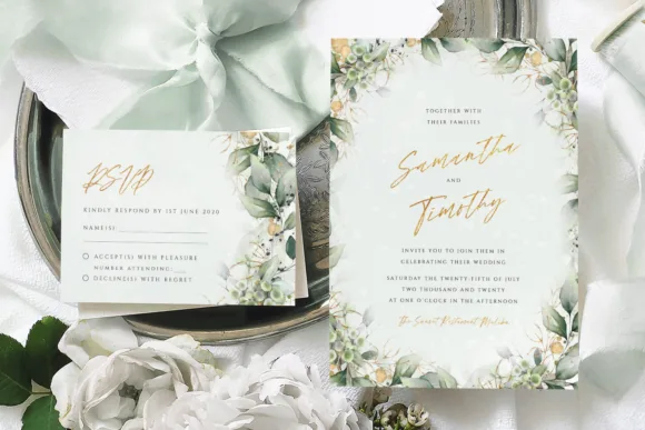 Technical Details: 2 PSD files | Resolution: 300 DPI | Invitation: 5″×7″ | RSVP: 5″×3.5″ | Bleed: 3mm | Print-ready | Mockup not included