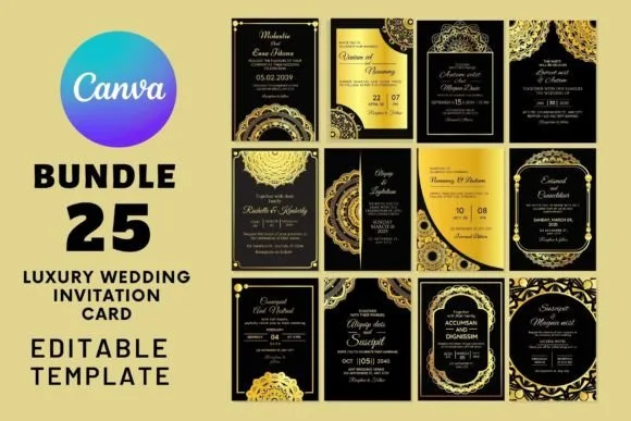 Technical Details: 25 unique designs | Size: 5″×7″ | Platform: Canva (free) | Gold foil style | PDF Canva link delivery | Instant digital download