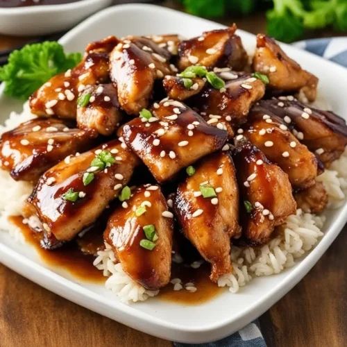 Serve:Switch the teriyaki hen to a serving platter and sprinkle with sesame seeds and chopped inexperienced onions, if desired, for garnish.Serve the teriyaki hen scorching over cooked white rice, with additional sauce spooned excessive if desired.Take pleasure in your selfmade teriyaki hen!